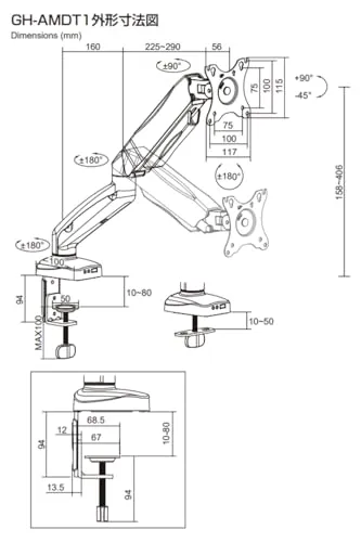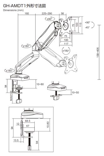 【新品】グリーンハウス モニターアーム 17-32インチ対応 耐荷重2-9kg 3年保証 メカニカル 4軸 GH-AMDT1-BK