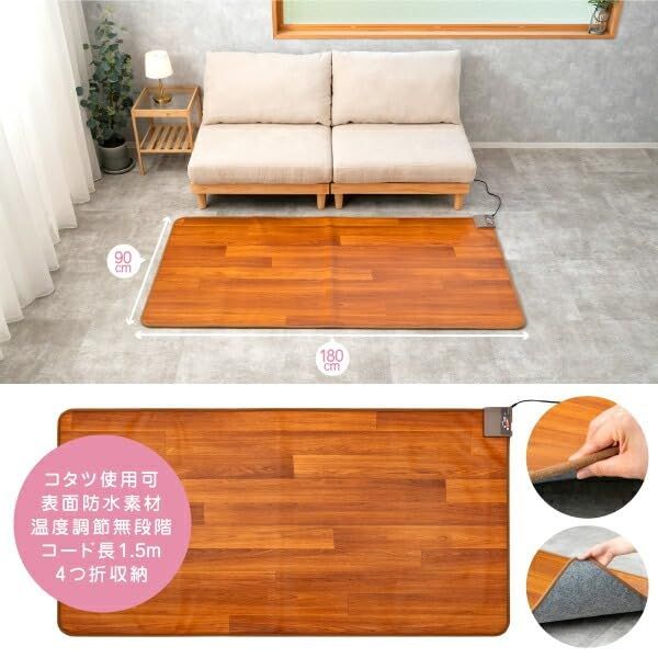 【新品】ホットカーペット 本体 フローリング調 90×180cm 1畳相当 足元 防水 暖房 木目調 ブラウン色 MORITA(モリタ) TMM-9018P