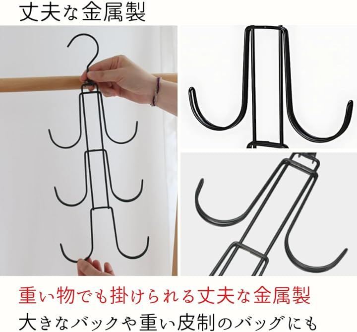 棚を使わず、立体的にバックを収納できるからスペースを有効活用できるスグレモノ。