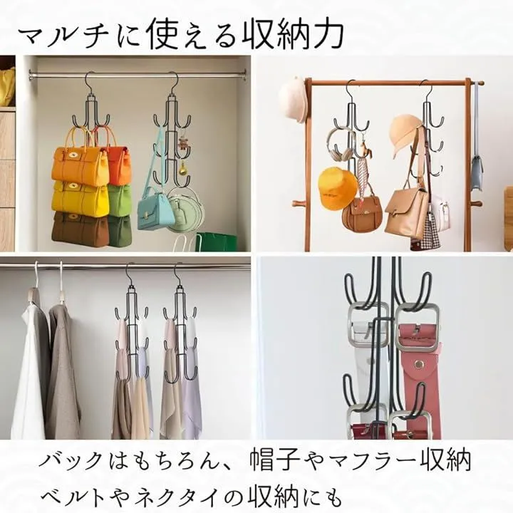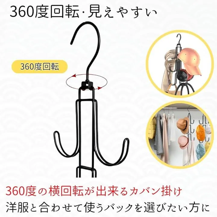 せんふう カバン掛け バック掛け バッグ収納ラック 吊り下げ 360度回転 整理 帽子 小物 2個セット (ブラック)