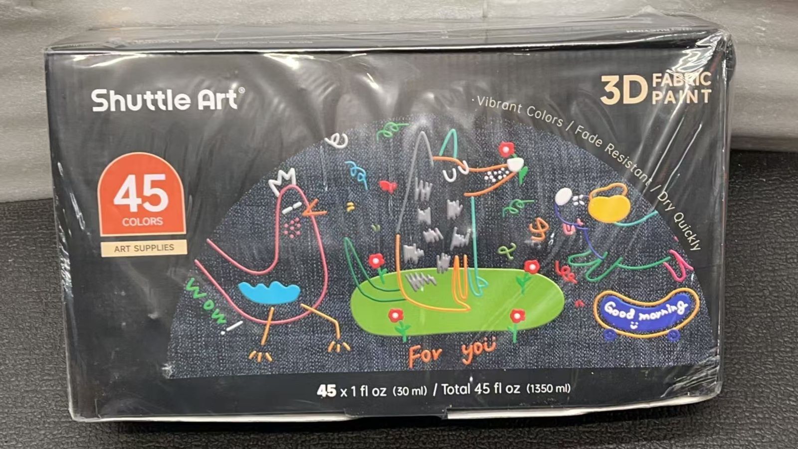 Shuttle Art 布用絵の具 3D 立体 45色セット 30ml 布えのぐ ファブリックペイント メタリックカラー ウォッシャブル 洗っても落ちない 耐久