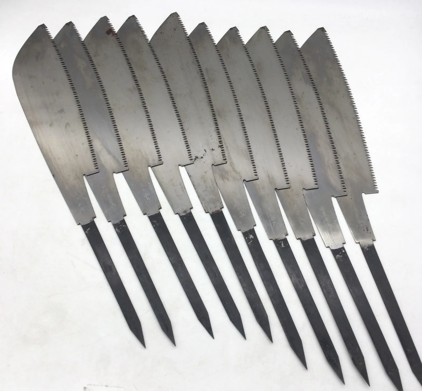 11460 【未使用保管品】中屋利弘作 穴引鋸 穴挽 のこぎり 替刃 10枚セット 日本製 木工用 大工道具 伝統刃物 刃物工具 信州スワ 390mm