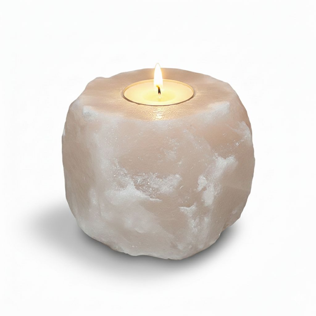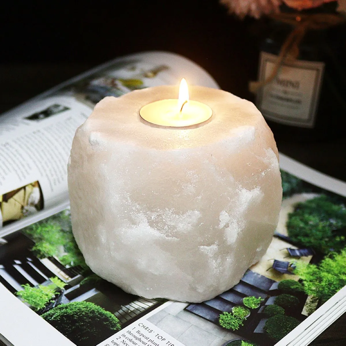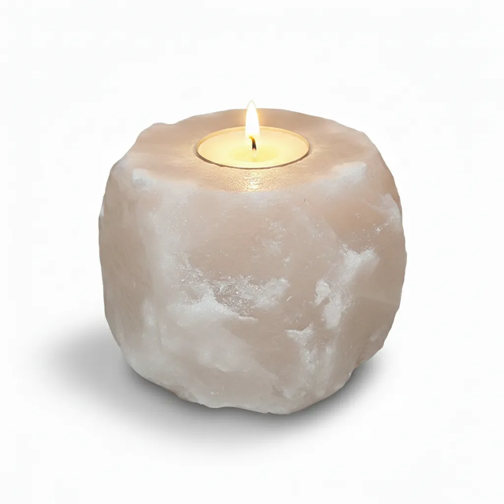 ヒマラヤ岩塩 ホワイト キャンドルホルダー キャンドルスタンド 岩塩ランプ 盛り塩 ランタン ホワイト岩塩 塊 岩塩ブロック ろうそく立て ティーライトキャンドル キャンドルライト ハロセラピー ナチュラル岩塩 風水 浄化済 波動 ナイトライト