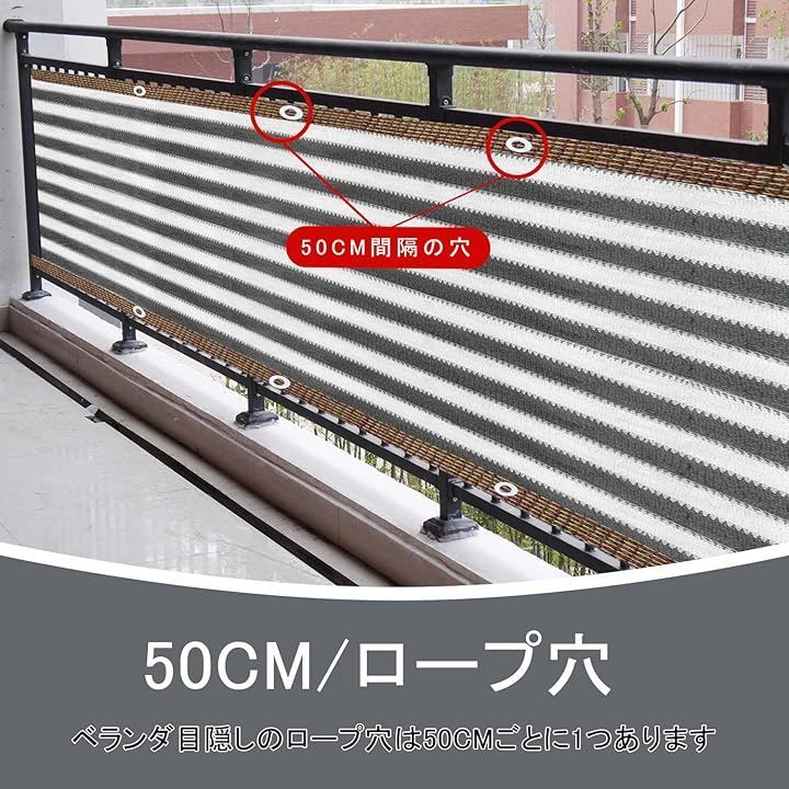 堅塁金物 ベランダ目隠し 遮光ネット プライバシー保護 日除けシェード 厚みを増した バルコニー マンション UVカット 50CMごとに1つのロープ穴 (グレーと白, 0.9Mx9M)