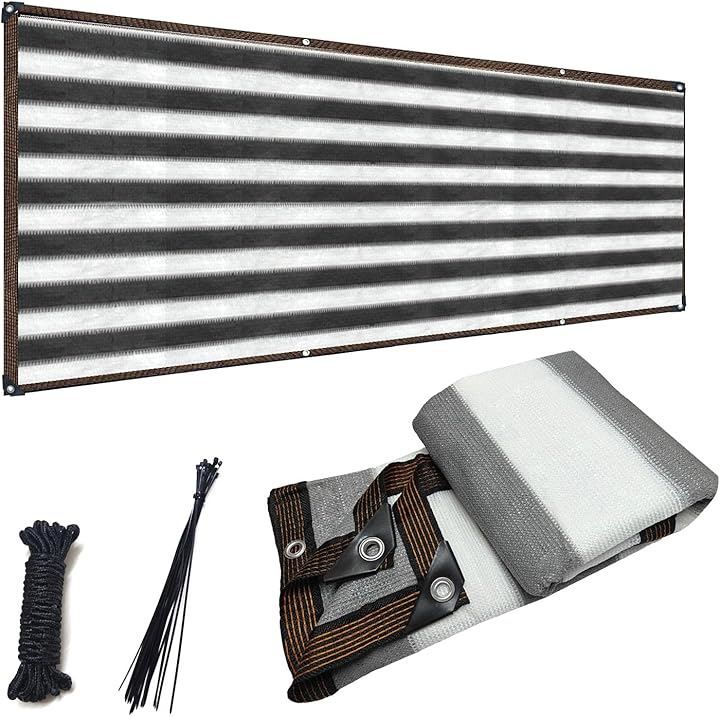 堅塁金物 ベランダ目隠し 遮光ネット プライバシー保護 日除けシェード 厚みを増した バルコニー マンション UVカット 50CMごとに1つのロープ穴 (グレーと白, 0.9Mx3.6M)