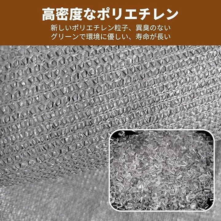 「紫外線防止」生地(HDPE)の染料にUVカット剤を加え、紫外線をしっかりカットできます,遮光率90%~95%で太陽光を大幅にカットします。