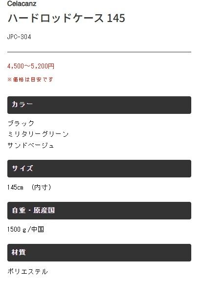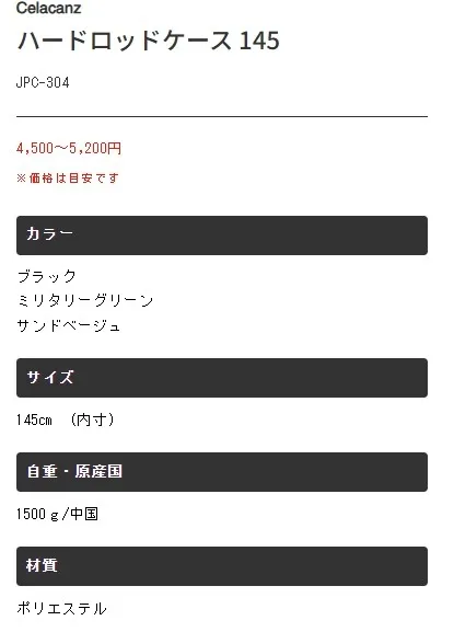 ハードロッドケース JPC-304ブラック145cm(内寸)