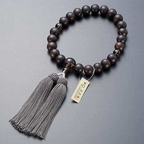 【新品未使用】 珠の素材:縞黒檀(艶消) 22玉/主珠…縞黒檀(艶消)13mm玉/親珠…茶水晶16mm玉/天珠…茶水晶10mm玉/房の素材:正絹頭付房(ねず茶色)/備考:数珠袋付き(縦10cm横17cm)、数珠は桐箱入り 美しい木目が特徴的な銘木の縞黒檀を使用し、アクセントに茶色く透きとおった美しい茶水晶を使用した男性用の念珠です。 黒檀は艶を消すことで本来持つ風合いがそのまま生かされ、使い込むほどにしっくりと手に馴染み、深い質感のある色になっていきます。シックな茶水晶との組み合わせは抜群で、落ち着いた雰囲気を演出することが出来ます。 房は京都の伝統工芸である「京房ひも」の職人が製作した正絹頭付房を使用しております。京房ひも職人が作った証しであるシリアルナンバーをお付け致します。 滝田商店ブランド品質の証である滝田商店発行「京念珠製造師製作証明書」付き。伝統ある「京念珠」だけが付けることを許される京都珠数製造卸協同組合のタグ付き。京念珠製造師が匠の技で仕立てた逸品でございます。