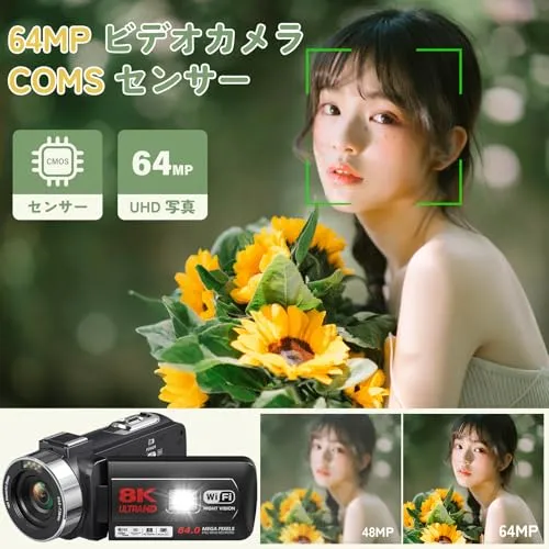 【新品未使用】 《 8K&6400万画素 ビデオカメラ》 このビデオカメラは、複雑な機能が一切無し、コスパを重視するベシックセットであることが一番のメリット。高画質CMOSセンサーを搭載し、64MPの画像解像度と8Kビデオ解像度に対応し、よりリアルにし、精細で鮮やかな写真/動画を撮影できる8Kビデオカメラです。付属の32 GB高速TFカードは十分なストレージスペースを提供します。最大サポートを 256 GB まで拡張できるため、ストレージを安心して利用できます。日常生活もアウトドア旅行もスポーツも、このカメラはすばらしい瞬間を完璧に表現することができます。 《3.0インチ タッチスクリー&18X デジタルズーム》3.0 インチ タッチスクリー(16:9)を搭載した8KコンパクトYouTubeカメラ、リアルな色彩と繊細な画質を表現します。18倍デジタルズーム機能と組み合わせて、W/T ボタンで画像を拡大または縮小することができます。広大な風景でも小さなディテールでも、さまざまな撮影ニーズに合わせて簡単に捉えることがで、初心者でも簡単にきれいな写真が撮れます。 《WIFI機能&ファイル転送&2.4Gリモコン遠隔制御&HDMI機能》Wi-Fiでの通信にも対応して、「Hello Cam」アプリをダウンロードすると、カメラとスマートフォンのWIFI信号をオンにして、接続に成功したら、スマートフォンが 8K ウェブカメラを制御するためのリモコンになり、約10m(遮蔽物なし)の距離でカメラの撮影・設定・表示・送信を制御できます。家族や友達と写真や動画を共有するのにとても便利です。2.4 Gリモコンワイヤレス長距離リモート技術を使用し、360度全方位制御カメラ、約20 mの範囲(遮蔽物なし)でカメラを制御することができ、自撮りや集合写真の撮影に最適です。カメラとテレビを接続すると、HDMIインタフェースは圧縮されていないビデオ信号の伝送を提供し、写真/ビデオの画質が鮮明で滑らかであることを確保することができます。 《IR暗視機能&フラッシュランプ機能&多種類フィルター》この軽量ビデオカメラにはIR暗視機能とフラッシュランプとフィルター機能があり、昼夜を問わ