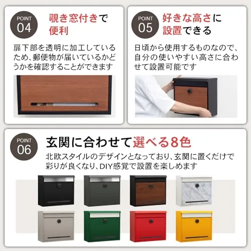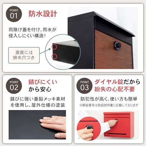 【大容量そして上品なデザイン】エレガントで北欧風のデザインが特徴で、大容量の投函スペースが備わっています。8カラーから選択でき、好きな色をお選びいただけます。ダイヤル式のロックを採用し、簡単に施錠でき、鍵を無くす心配もありません!