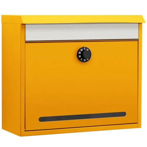 【新品】PYKES PEAK ポスト 壁掛け 郵便ポスト 郵便受け ダイヤル式 A4サイズ レターパック対応 おしゃれ 大型 縦型 サンドイエロー