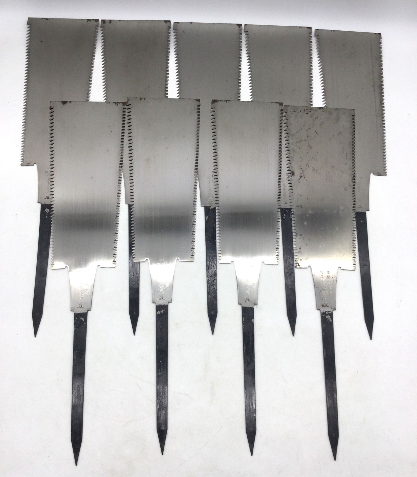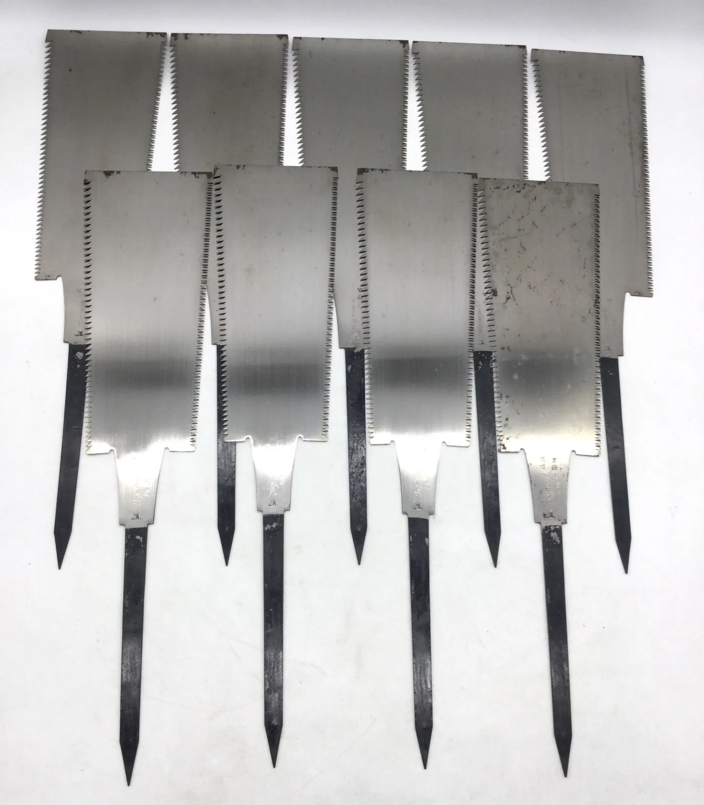【商品説明】 ・中屋利弘作 両刃鋸 替刃 9枚セット 300mm 日本製。 ・未使用の保管品です。 ・未使用ですが、経年劣化の為若干サビが見られます。 ・写真にて状態をご判断ください。