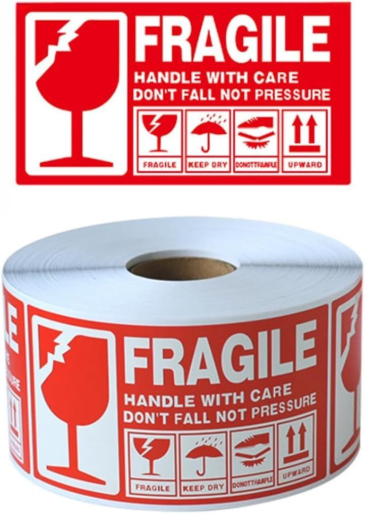 Ryubof フラジール ステッカー 割れ物注意 シール ラベル 取扱注意 荷物用 スーツケース用 警告シール 英語表記 大容量 国内海外対応 (130mmx70mm 500枚)