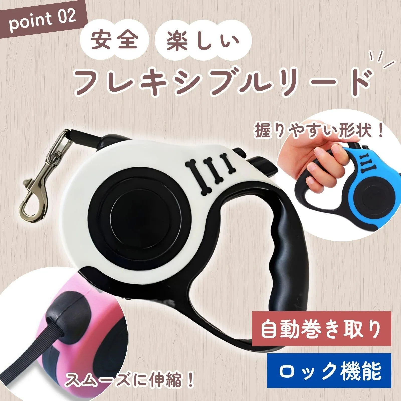付属の伸縮リードはかんたんに装着、取り外しが可能で、長さは調節でき、ロックすることも可能です。