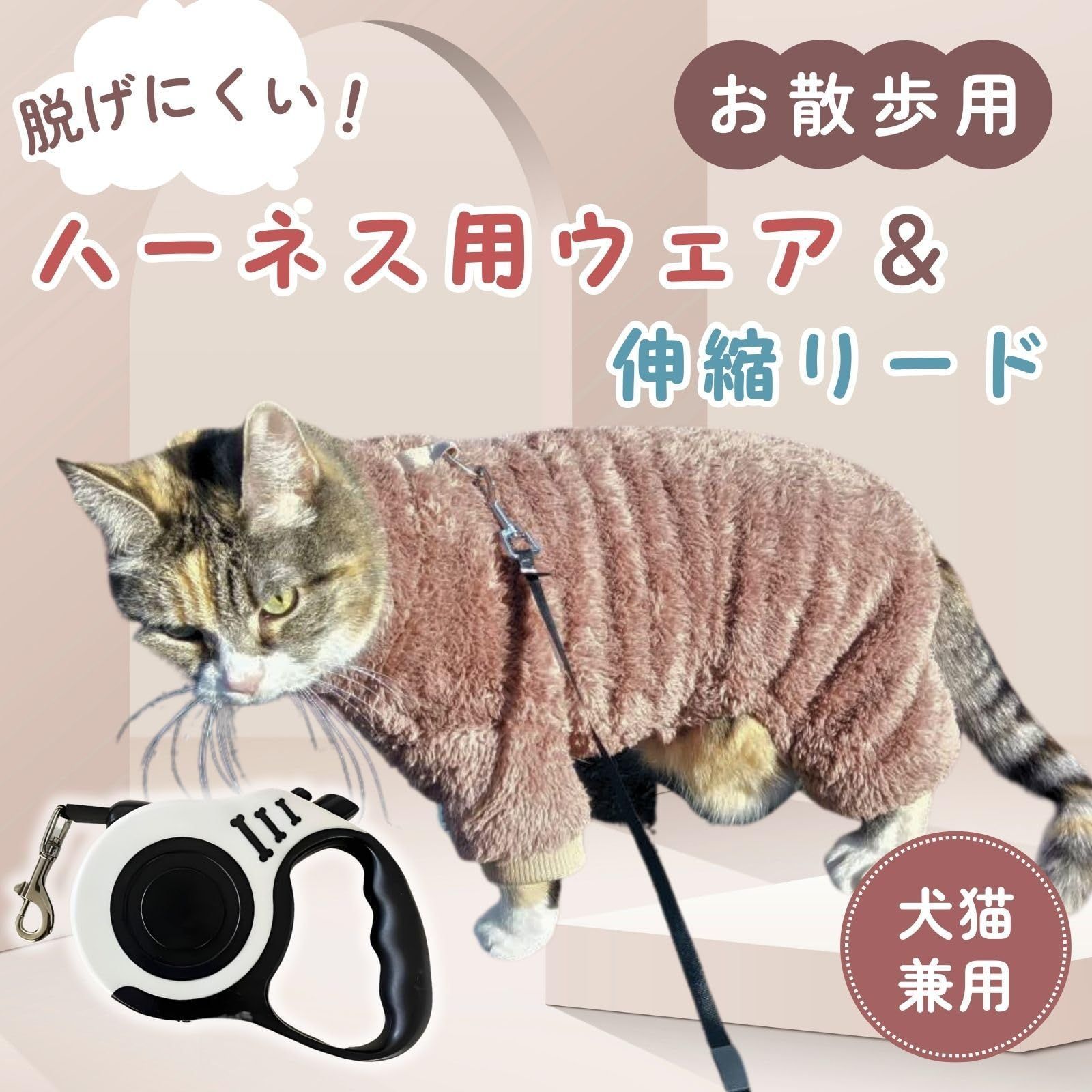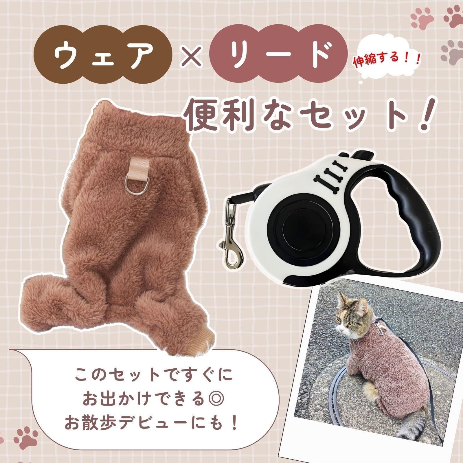 Lunacheルナシェ猫 リード付きハーネス 抜けない 猫用 散歩用 猫の散歩用リード ハーネスウェア おでかけにゃんこ ほっこりブラウン L