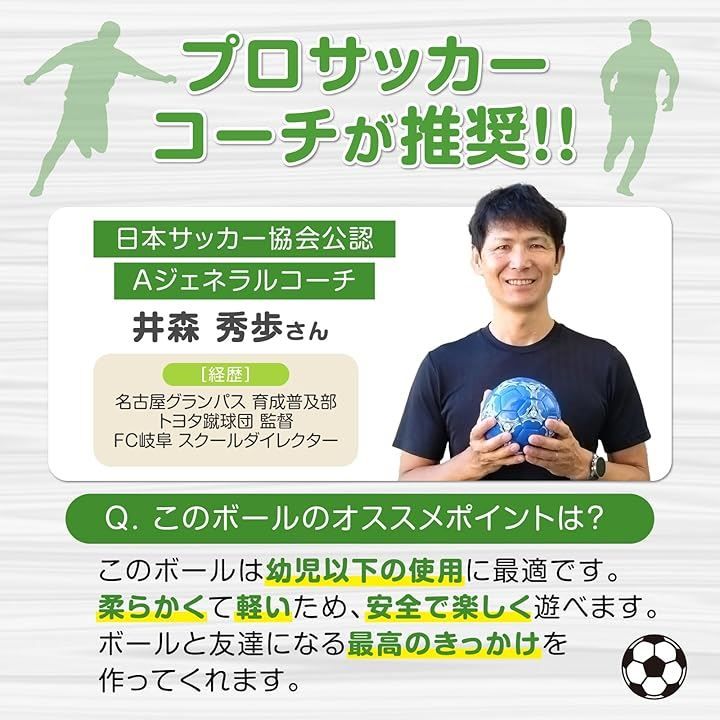 日本サッカー協会公認Aジェネラルコーチとして長年の指導経験を持つ井森秀歩氏が推奨する、幼児用サッカーボール2号球です。