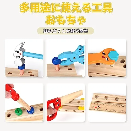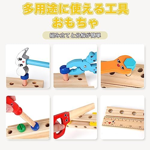 【新品】大工 おもちゃ 組み立て おもちゃ モンテッソーリ 木の 知育玩具 工具 3 4 5 6 7 8 歳 男の子女の子 プレゼント 子供 人気 誕生日プレゼント収納ボックス付き