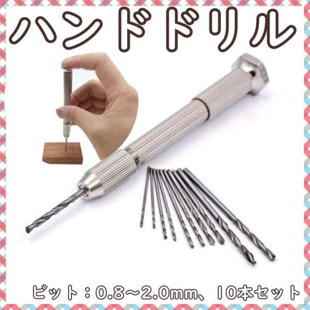 精密 ピンバイス ハンド ドリル 10本 穴あけ DIY工具 小型 ハンドメイド