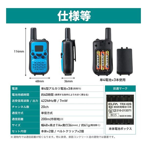 ELPA エルパ 特定小電力トランシーバー TRX-02 (2662274)