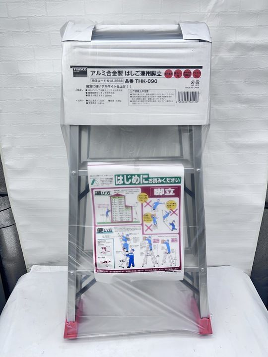 【開封済・未使用品】トラスコ中山 はしご兼用脚立 アルミ合金製・脚カバー付 高さ0.81m THK090 3020251125004