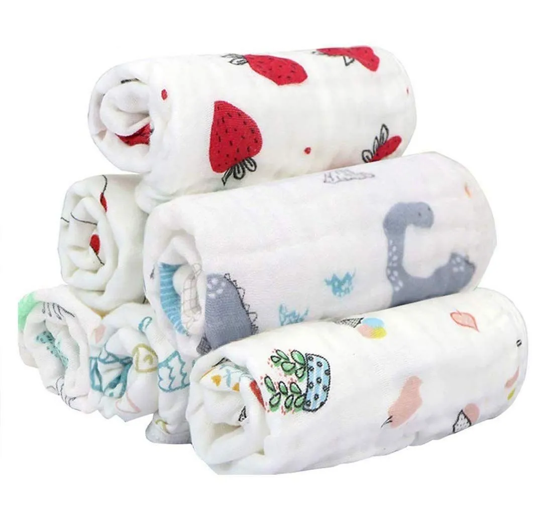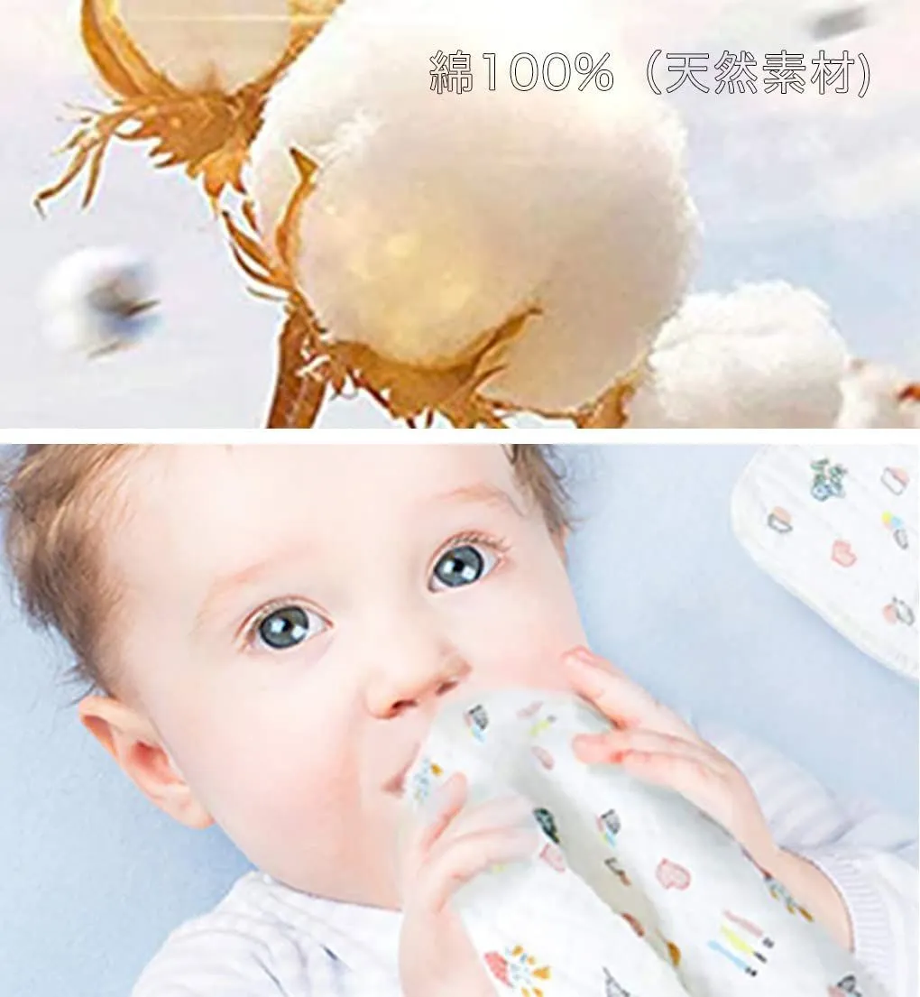 【用途】外出時に使うハンカチとして使用したり、食卓ではおしぼりとして使うこともできる 沐浴の時や、赤ちゃんのデリケートな顔、体をふくときにも安心して使えます。ミルクをよく吐き出す赤ちゃんにガーゼは大活躍です。赤ちゃんは汗っかきなので、顔をふいたりすることも多く、これからの夏にも重宝しそうです。