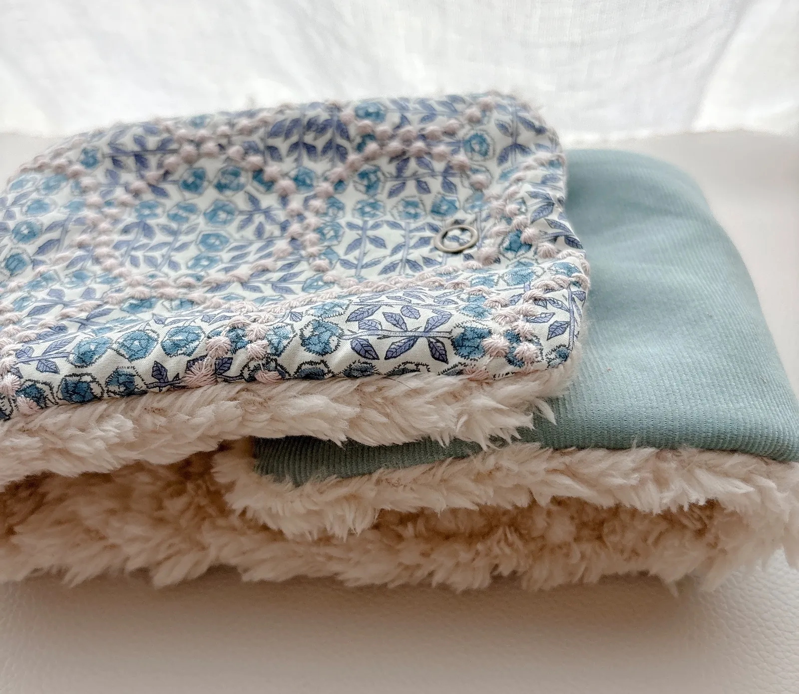 肌触り抜群のファーと、間にフランネル地を挟み、三重仕立ての程よい厚みです。