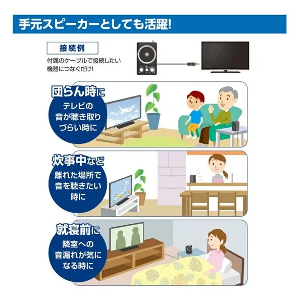 ●テレビにつなぐと手元で聴ける!
