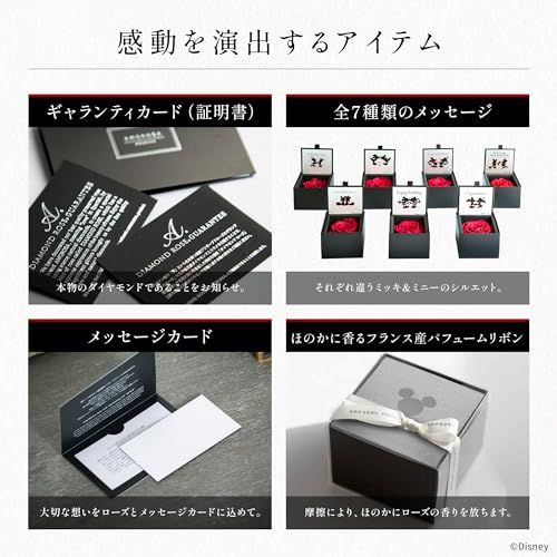 AMOROSA アモローサ プリザーブドフラワー ダイヤモンドローズボックス85 ディズニー You're my one and only ブライトレッド バラ ギフト 花 誕生日 結婚 記念日 プロポーズ ドライフラワー DS85ONEpo