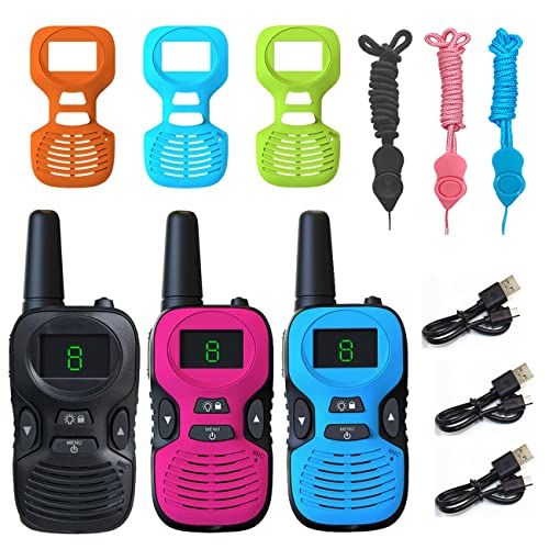 TRH 子供用 特定小電力トランシーバー 3台セット 小型 おもちゃトランシーバ 充電式 省電力おもちゃ無線機 超簡単な操作 LED ディスプレイ 技適マーク有 青い/黒/ローズレッドpo