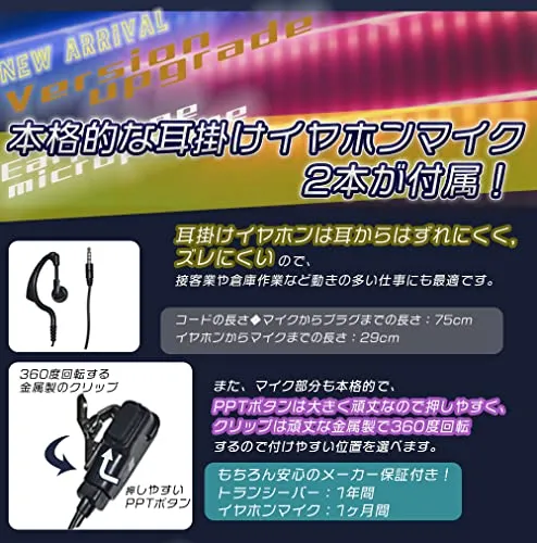 BLUE CENTURY ブルーセンチュリー 国内メーカー 特定小電力 トランシーバー BC-21 耳掛けイヤホンマイク ベルトクリップ 付属 インカム 総務省技術基準適合商品 技適マーク有 (2台セット)po