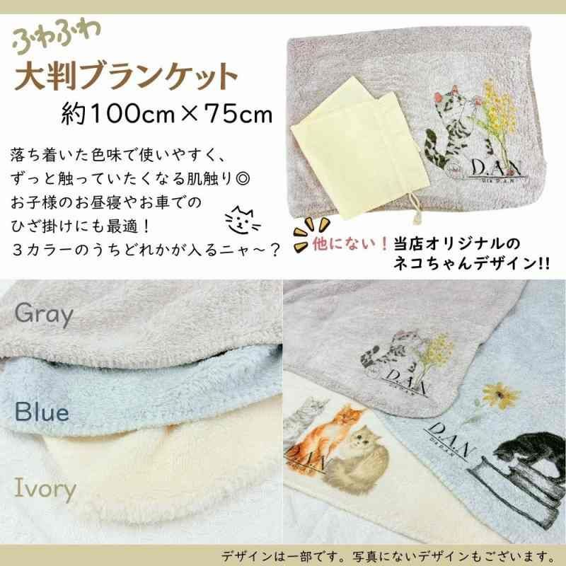 ブランケットは Gray/Blue/Ivory の3カラーのうちランダムで1点。