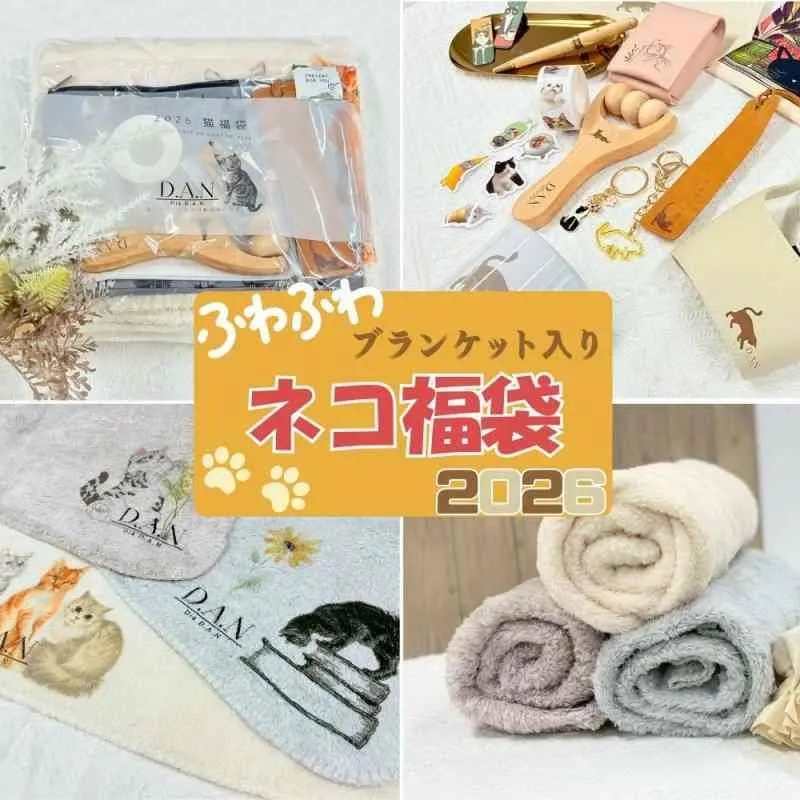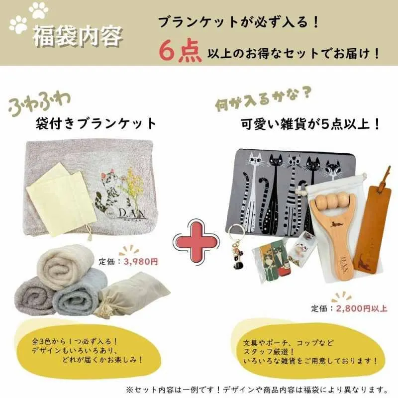 ネコ好き必見!大判ブランケット入り 猫雑貨福袋2026 7点以上 オリジナルデザイン