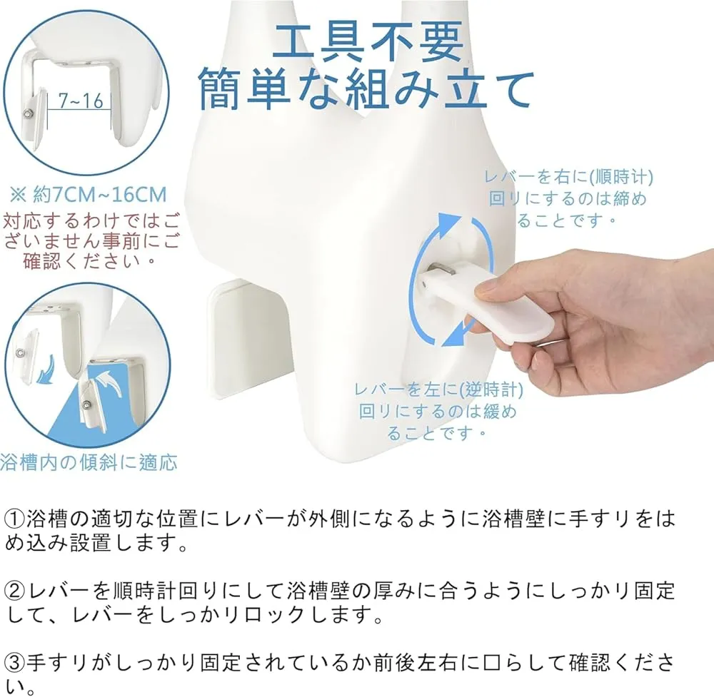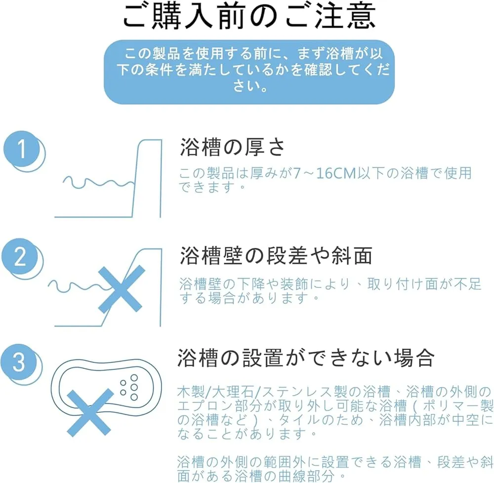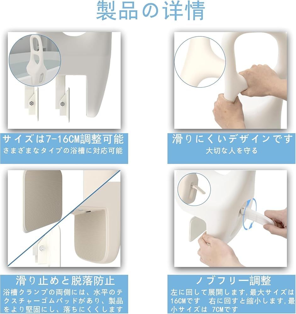 【ほとんどの浴槽に合うように調整】簡単に調整可能な耐久性のある複合浴槽レールは、厚さ7~16cmのほとんどの浴槽の端に適合します。円形の浴槽やラジアンのある浴槽は使用に適していません。