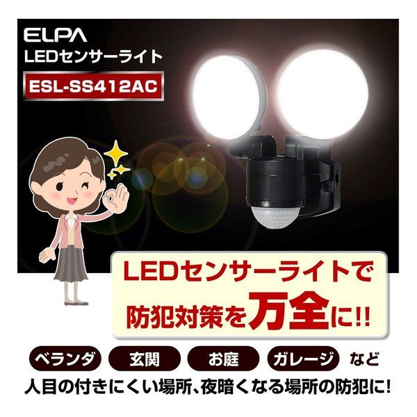 ELPA エルパ 防犯ライト ACコンセント式センサーライト 2灯 800ルーメン ESL-SS412AC (2662236)