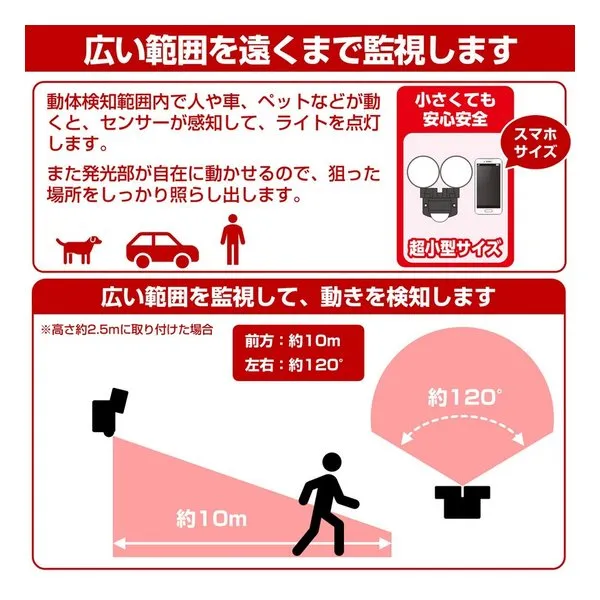 ●暗闇でセンサーが人や車の動きを検知して自動点灯