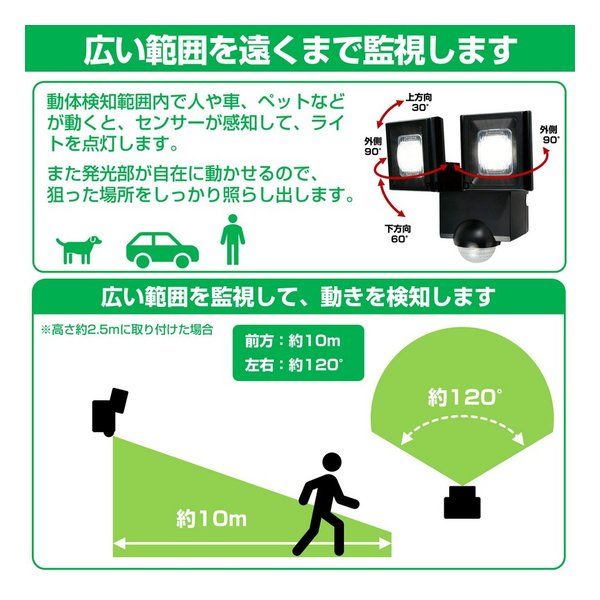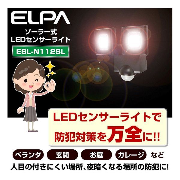 ELPA エルパ 防犯ライト ソーラー充電式センサーライト 2灯 340ルーメン ESL-N112SL (2662234)