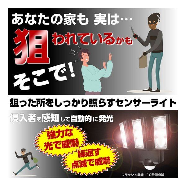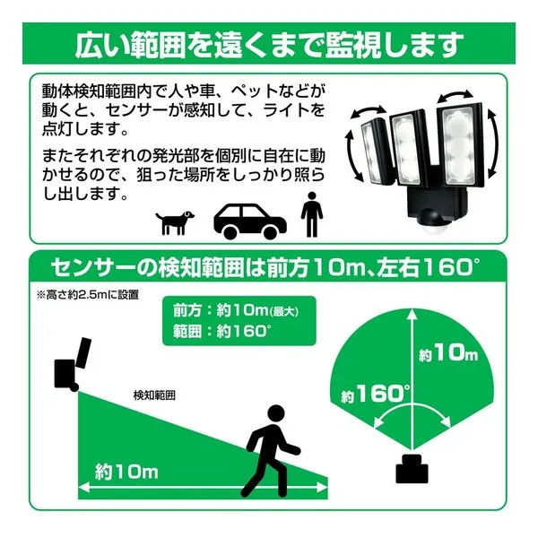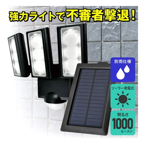 ELPA エルパ 防犯ライト ソーラー充電式センサーライト 3灯 1000ルーメン ESL-313SL (2662212)