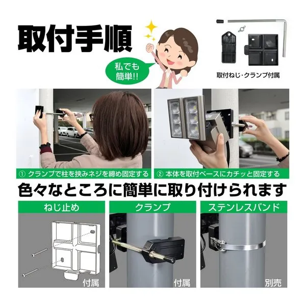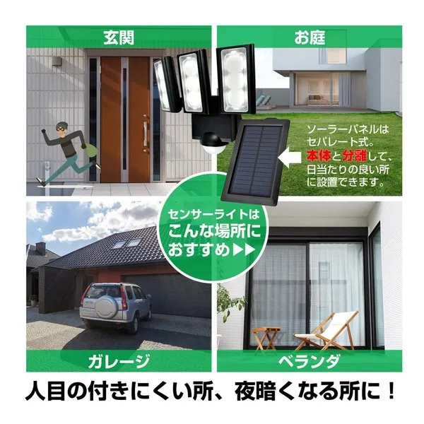 ●ソーラー発電式なのでコンセントがない場所に設置でき、電気代もかかりません