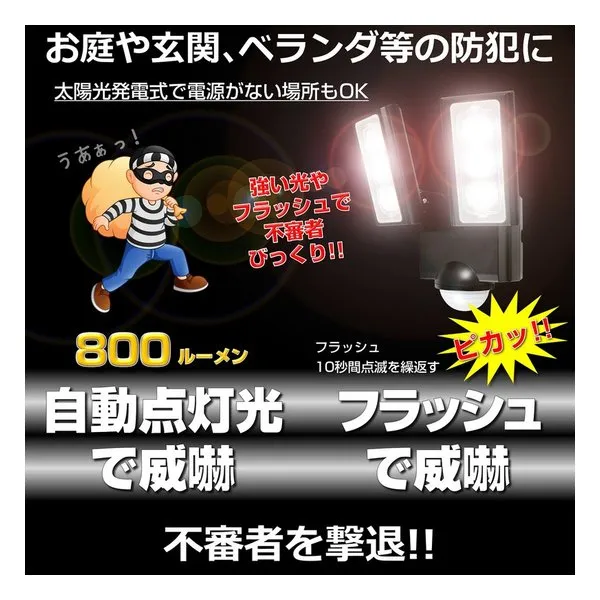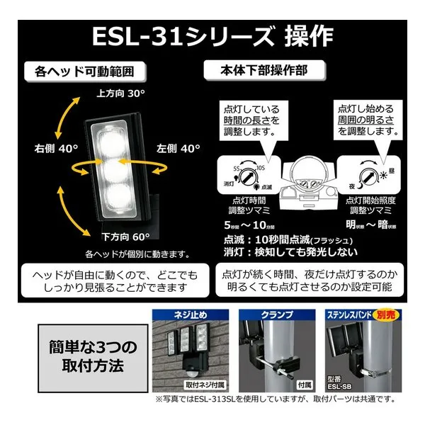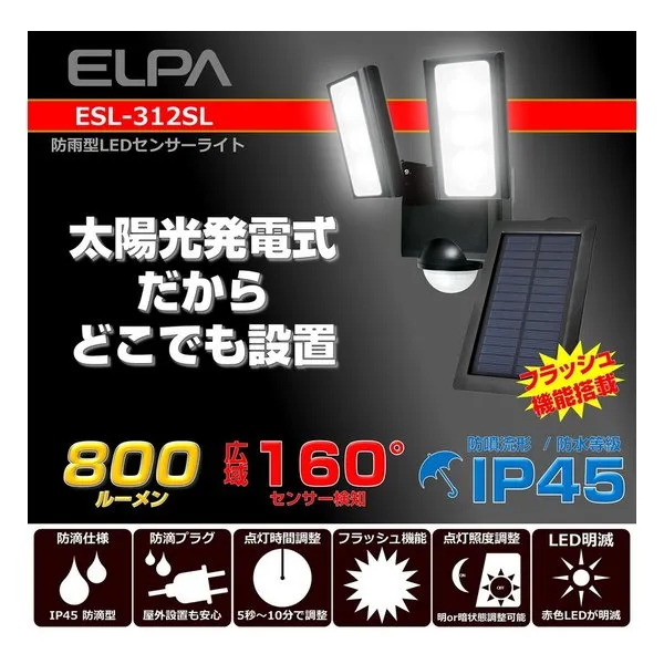 ELPA エルパ 防犯ライト ソーラー充電式センサーライト 2灯 800ルーメン ESL-312SL (2662141)