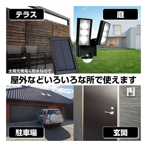 ●ソーラー発電式なのでコンセントがない場所に設置でき、電気代もかかりません