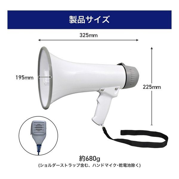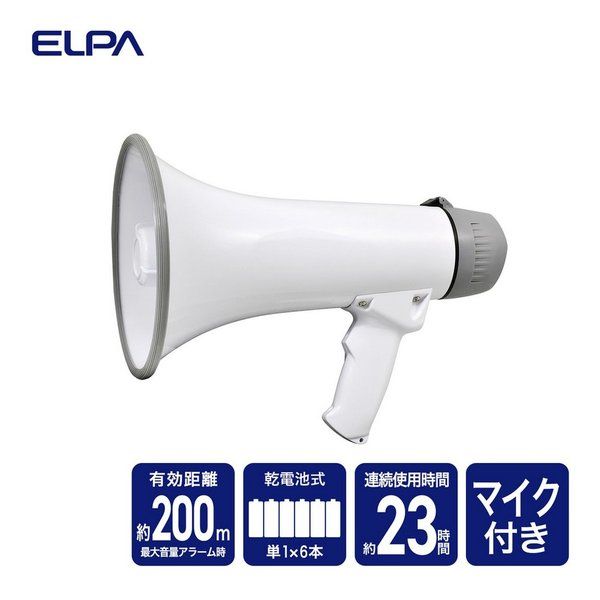 ELPA エルパ マイク付ハンドメガホン 有効距離200m/単1形乾電池6本 別売 /連続使用時間23時間 AHM-002 (2662387)