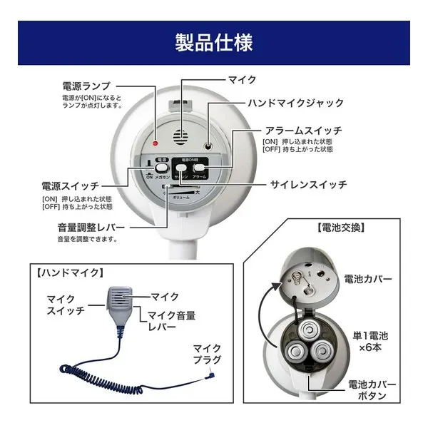 ■音量:105dB/m(音量最大アラーム、サイレン時) ※アルカリ乾電池使用時