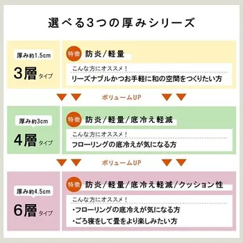 フローリングに置くだけで、なつかしい畳の香りと肌ざわりを手軽に楽しめます。