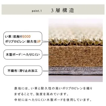■素材・成分:表地=い草+ポリプロピレン中材=木製ボード10mm裏地=不織布 着日指定はお受けすることができません 発送後お問い合わせ番号をご連絡しますので 配送業者と調整をお願いいたします ************ 大型家具の場合 配送先地域によっては発送後8~10日ほどかかる場合があります ************