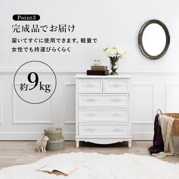 コロンとした脚と繊細な浮き彫りが上品なチェスト。