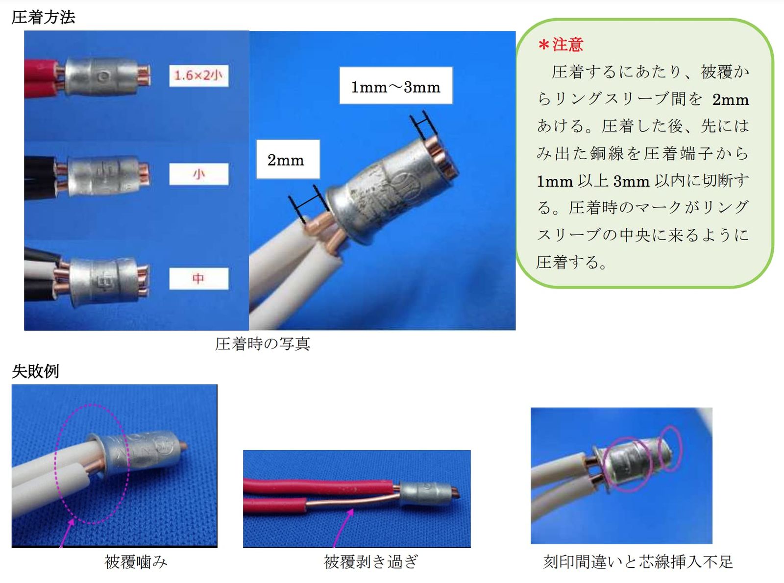 圧着能力:リングスリーブ(小、中)