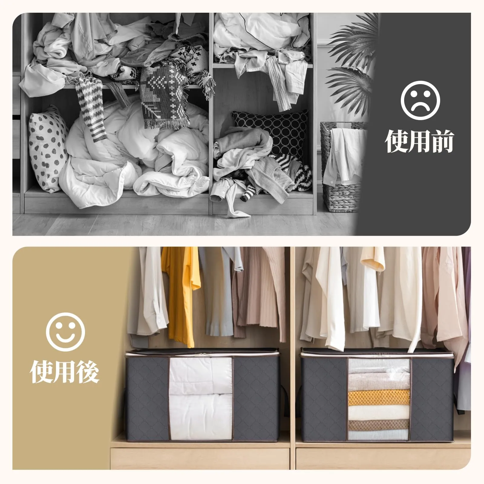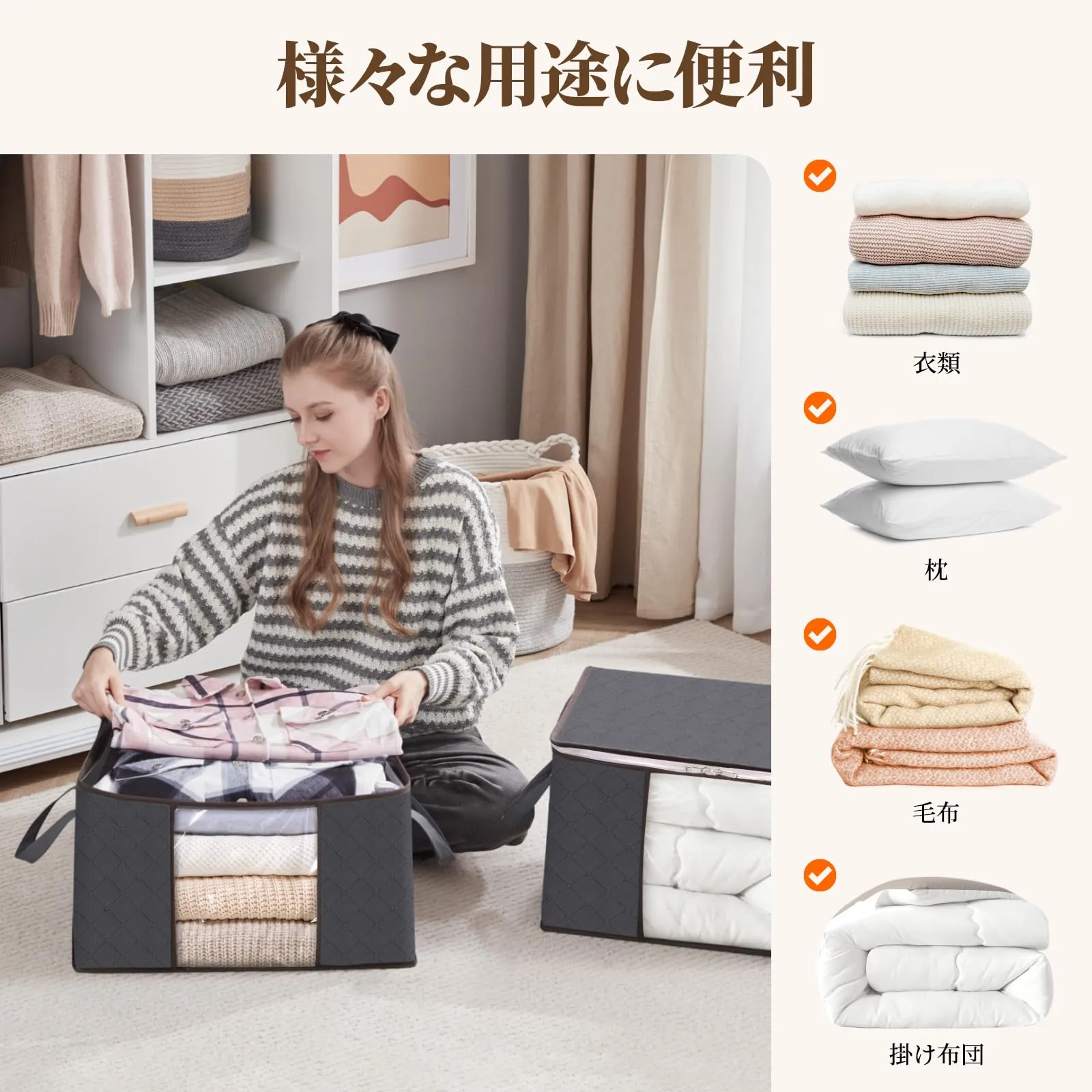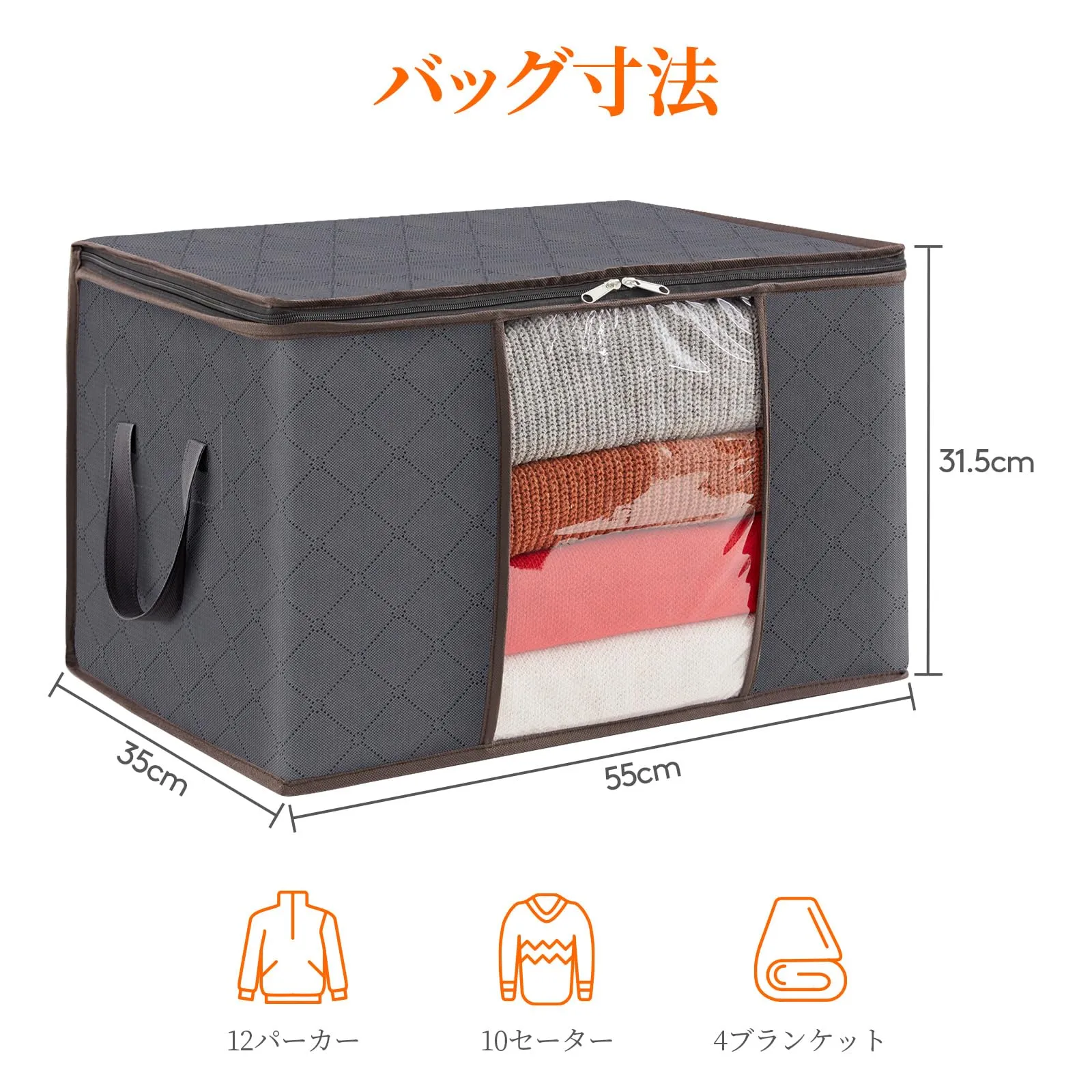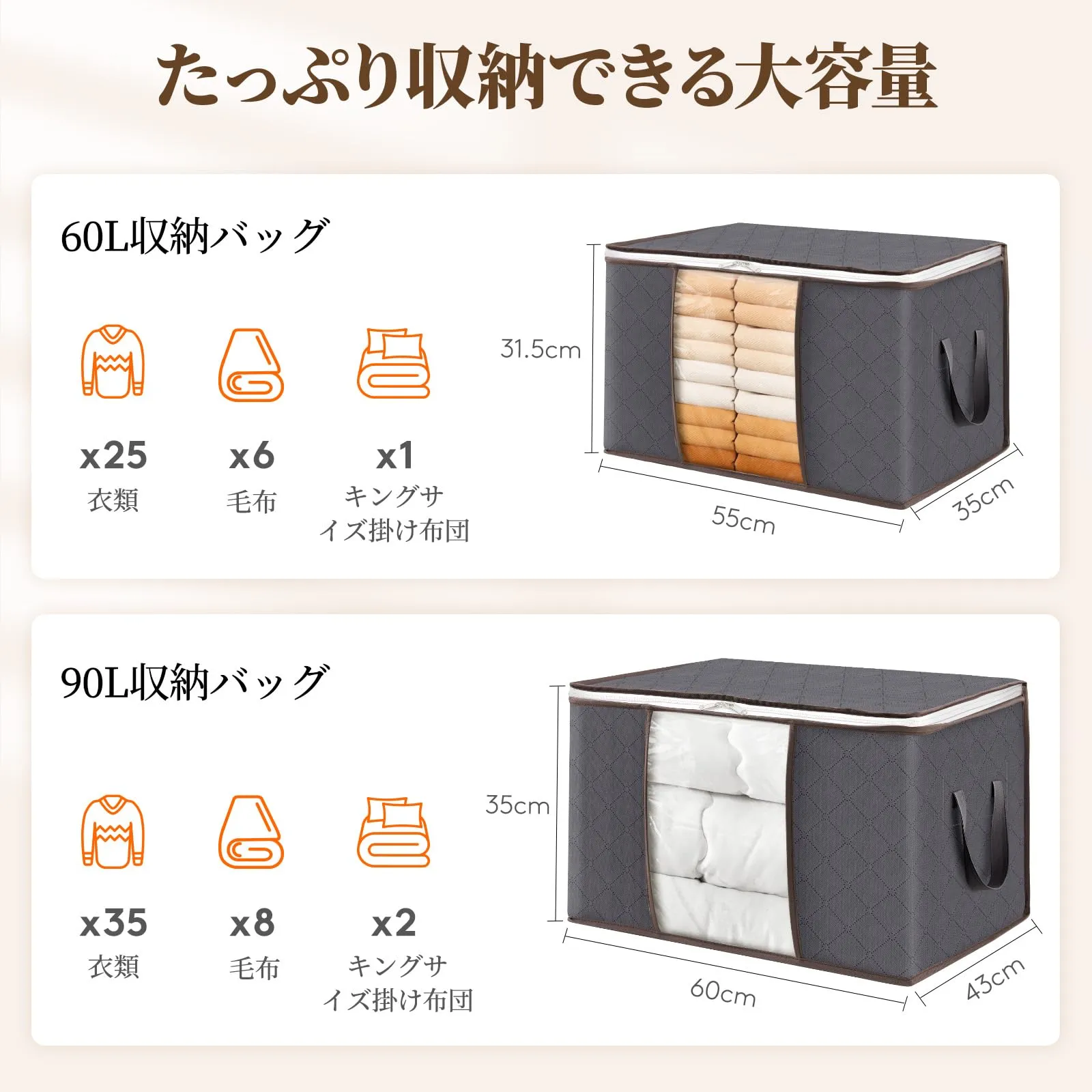 マルチパックオプション:各収納バッグのサイズは21.6インチ(55cm)×13.7インチ(35cm)×12.4インチ(31.5cm)、容量は60Lです。収納袋の周囲と底には段ボールの支えがありません。大容量なので、冬服やセーター、枕、毛布、掛け布団などを簡単に収納することができます。ご自宅をすっきりと整頓して保つことができます。