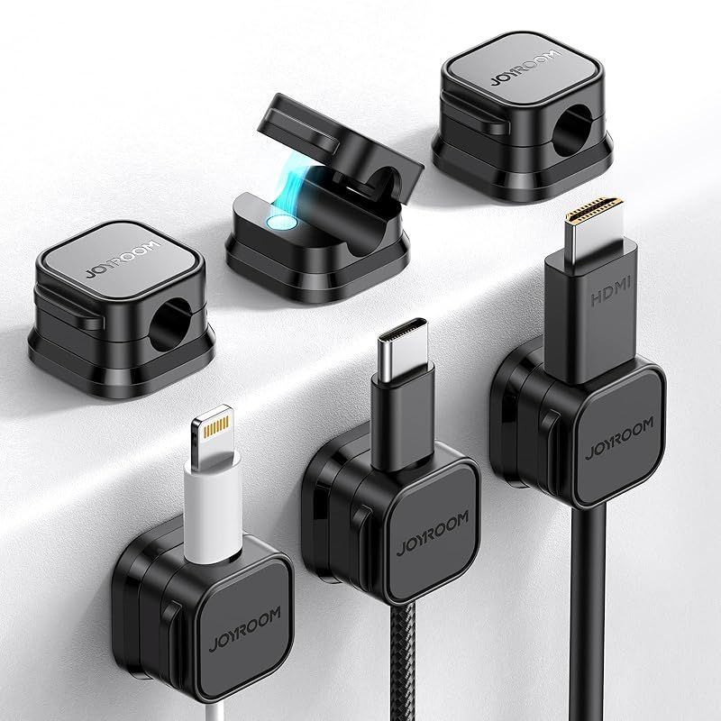 JOYROOM ケーブルホルダー「6個セット・業界初!マグネット式」 ケーブルクリップ 配線止め 配線整理 ケーブルスムーズ調整可能 コードホルダー デスク周り コードクリップ 貼り付け 強力粘着 USB配線収納 卓上 デスク 机 壁 車 ナイトテーブル 1