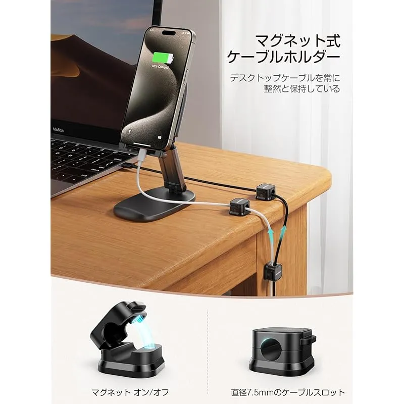 【スムーズに引っ張り!複数のケーブルを収納可能!】7.5mmの完璧なケーブルスロット直径で、携帯電話の充電ケーブル、USBケーブル、HDMIの太いケーブル、コンピューターの電源コードなど、ほとんどのケーブルを収納できます。さらに、7.5 mm のスロット直径により、ほとんどのケーブルに対応します。iPhoneのオリジナルシリコン充電ケーブルと同じくらい小さな充電ヘッドを脱落することなく完全に固定し、固定された充電ケーブルをスムーズに引き出してスムーズに使用できます! ??????