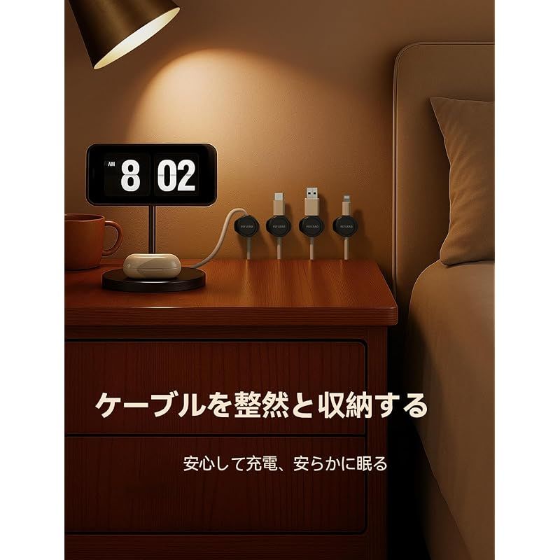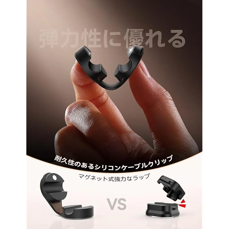 【特別設計のシリコン磁気ケーブルクリップ】一体成形シリコンデザインのコードオーガナイザーは、優れた成形性を備えており、柔らかいシリコン素材により、高い伸縮性と肌触りの良さを兼ね備えています。10,000回以上の引張テストを経ても、柔軟な上下ジョイントは破損しません。最強のN55磁石を採用しており、ケーブル同士を密着させます。柔らかいシリコン製のコードホルダーはケーブルを優しく包み込み、圧迫や損傷を与えません。 ??